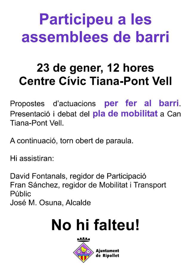 Propostes d'actuacions i presentació i debat del pla de mobilitat per al barri.