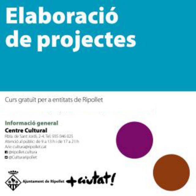 | Taller per a entitats culturals: "Elaboració de Projectes" | | | Taller adreçat a les entitats culturals del municipi. Inscripcions: cultura@ripollet.cat.