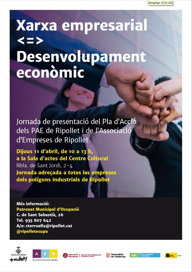 | Jornada "Teixit empresarial i desenvolupament econòmic" | | | Jornada adreçada a totes les empreses dels polígons industrials de Ripollet. |