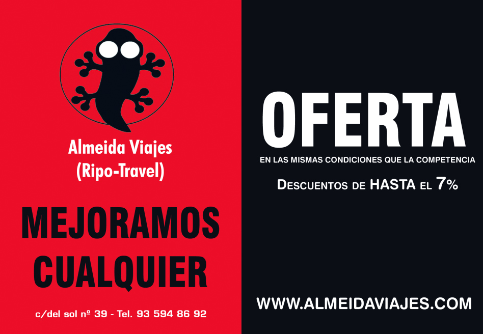 Descripció: Vine ja a viatges Almeida, millorarem qualsevol oferta que tinguis. Contem amb més de 300 empreses en Portugal i Espanya. Almeida Viatges, perquè et mereixes un descans.
