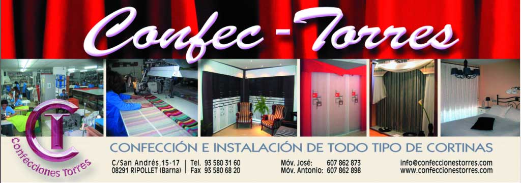 Confecció i venda de cortines convencionals. Catifes, llençols, edredons, coixins, riels. En Confeccions Torres ens dediquem a la fabricació, disseny i confecció de cortines de tela, per vivendes e instal·lacions comercials de tot tipus.