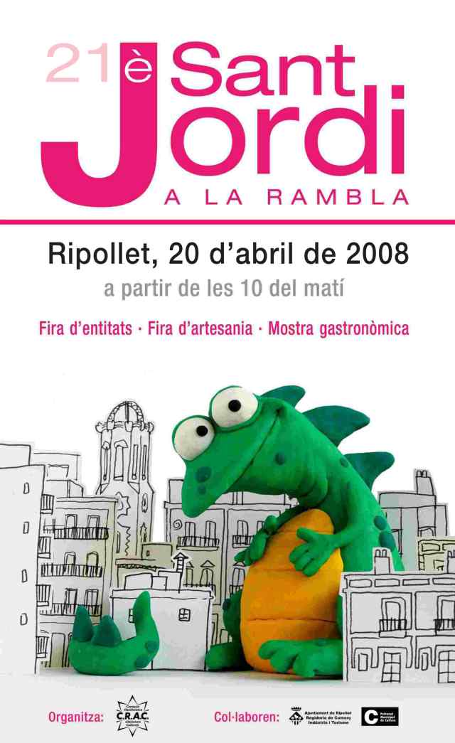 El proper diumenge, 20 d'abril, la CRAC celebrarà la 21a edició del Sant Jordi a la Rambla, amb la col·laboració del Patronat Municipal de Cultura, la regidoria de Comerç, Indústria i Turisme i diverses entitats locals. Com a novetats, enguany la fira d'artesania canviarà d'ubicació, traslladant-se de la plaça de Pere Quart a la mateixa Rambla. La CRAC espera que la fira compti enguany amb una quarantena de parades. En total, s'instal·laran prop d'un centenar d'estands entre la rambla de Sant Jordi i la de Sant Esteve, trobant parades d'entitats, partits polítics, així com de llibres i roses.