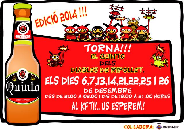 Els Diables de Ripollet tornen a proposar jugar al quinto per Nadal. Aquest joc, també anomenat segons la zona quina, plena o loteria vella, és un joc típic de les dates nadalenques que es juga a diversos llocs del Vallès, l'Empordà, i la Cerdanya. La seva mecànica és semblant a la del bingo. Les sessions d'aquesta desena edició començaran aquest dissabte, 6 de desembre i s'allargaran fins el proper dia 26.