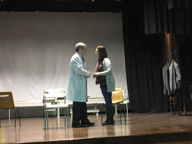 Foto: Assaig de l'obra 'Els bojos del bisturí', extreta del facebook d'Amics del Teatre