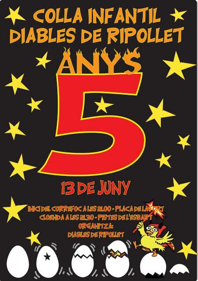 Els diables més joves de la colla local celebraran el pròxim 13 de juny el cinquè aniversari de la creació de la colla infantil. A banda dels Diables de Ripollet, també hi participaran diverses colles infantils convidades, les quals realitzaran una gimcana a la tarda.