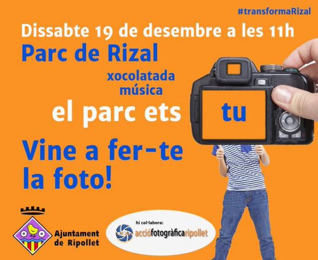 L'Ajuntament inicia aquest dissabte, a partir de les 11 de matí, la campanya #transformaRizal. La iniciativa comunicativa sorgeix arran de l'assemblea sobre el parc, celebrada a finals d'octubre, que va recollir el clam veïnal per a la millora urbanística, d'usos i de convivència al parc de Rizal. Aquest dissabte al matí tindrà lloc la primera actuació, amenitzada amb una xocolatada i la col·laboració de l'entitat Acció Fotogràfica Ripollet, que prendrà instantànies protagonitzades pels veïns, per a il·lustrar els plafons i pancartes que s'instal·laran pel barri. Les imatges aniran acompanyades de les propostes per transformar el parc que van sorgir a l'assemblea del passat 31 d'octubre.
