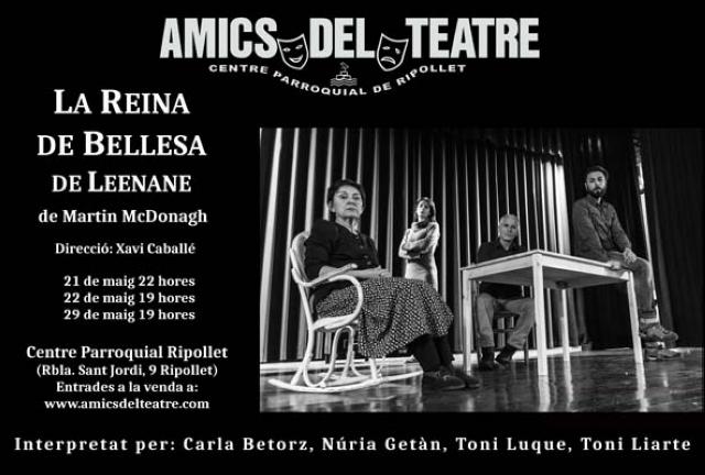 La representació teatral La Reina de Bellesa de Leenane es representarà durant aquest mes al Centre Parroquial. L'entitat Amics del Teatre representarà l'obra en tres sessions el 21 de maig a les 22 hores i el 22 i 29 de maig a les 19 hores.