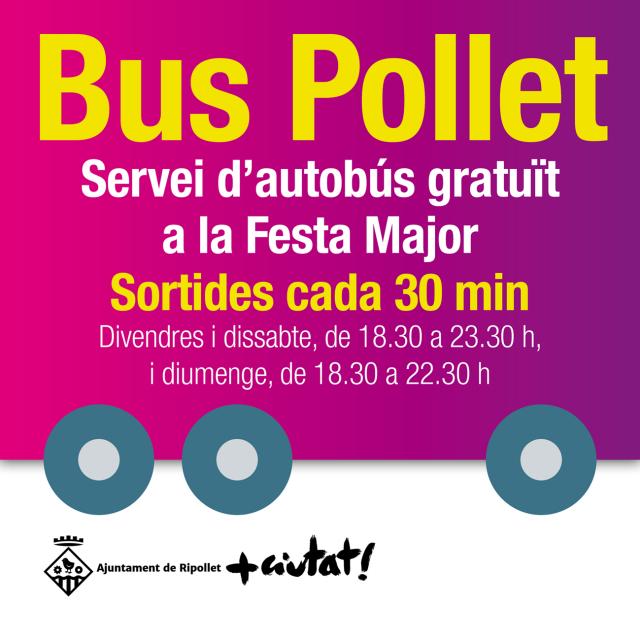 Una novetat de la Festa Major d'aquest any és el nou servei que s'oferirà durant aquests dies: el Bus Pollet, un autobús gratuït, que recorrerà tota la vila i tindrà un gran nombre de parades. Els combois sortiran cada 30 minuts. El seu horari serà divendres i dissabte, de 18.30 a 23.30 hores i diumenge, de 18.30 a 22.30 h. Hi col·labora l'empresa Autocars Font.