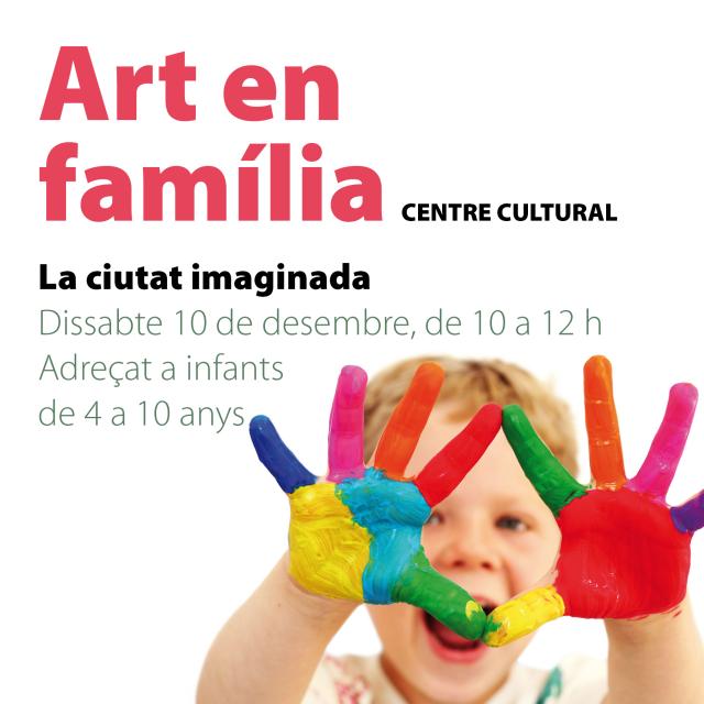 El Patronat Municipal de Cultura organitza dissabte, 10 de desembre, un nou taller del cicle Art en Família. Amb el títol de La ciutat imaginada, l'activitat està dirigida principalment a famílies amb infants d'entre 4 i 10 anys. El cicle es desenvolupa el segon dissabte de cada mes, de 10 h a 12 h.