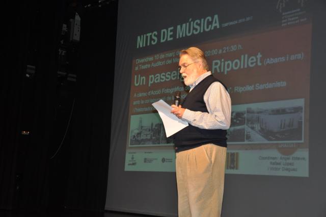 Les Nits de Música van celebrar el passat divendres, 10 de març, un dels actes més sonats dels seus 17 anys. Amb l'aforament del Teatre Auditori ple, Ángel Esteve va conduir, com si d'un programa de ràdio es tractés, diferents audiovisuals on es comparaven fotos del Ripollet d'abans i d'ara, realitzades per una trentena de fotògrafs locals d'Acció Fotogràfica i les aportacions dels arxius gràfics de Joan Serrano, Pere Padró, Miquel Gallego i Joan Mimó. Aquests vídeos eren comentats per l'historiador local Ramon Martos. A més, Amics del Teatre va participar en la banda sonora de l'acte, acompanyant les projeccions amb cançons, aixó com Ripollet Sardanista, amb sardanes relacionades amb la vila. A més, va ballar la sardana l'Empordà, cantada en viu per la Societat Coral "El Vallès", que també va encarregar-se de cloure l'acte amb la interpretació conjunta, amb tota la sala, de l'himne a Ripollet.