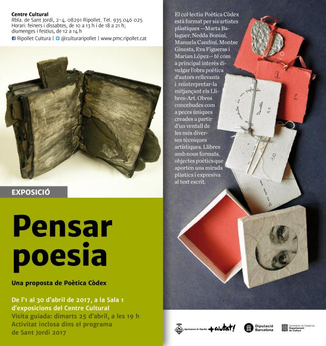 La proposta de les sis artistes plàstiques, titulada Pensar poesia, vol homenatjar i divulgar l'obra de poetes clàssics i contemporanis que, d'una manera ininterrompuda, durant més de nou segles, han mantingut recerca, qualitat i fidelitat a la llengua catalana.