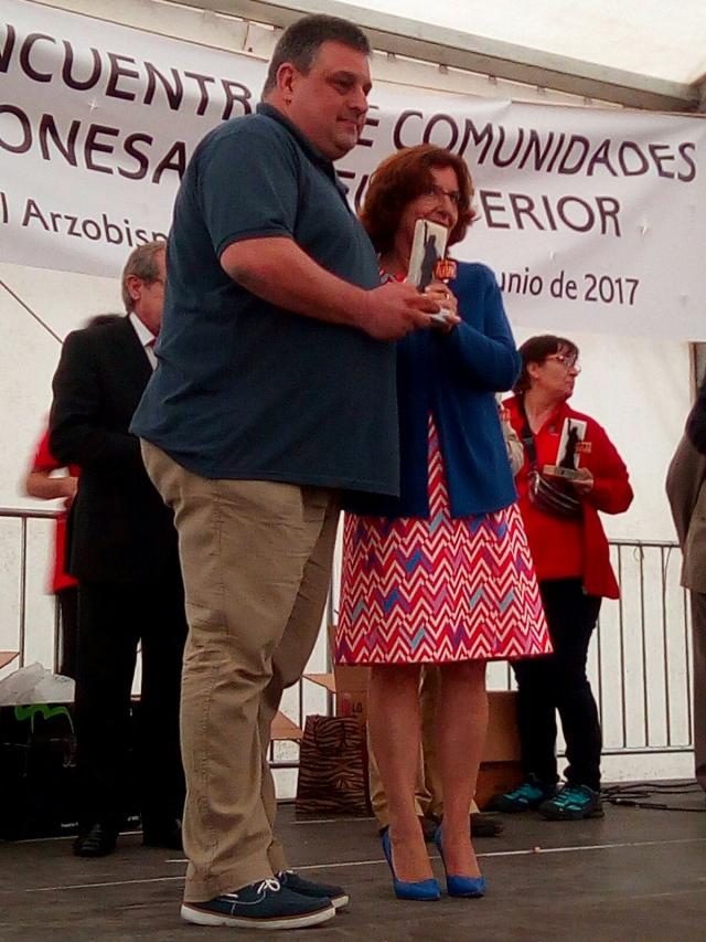 El president del Centro Aragonés de Ripollet, Marcos Gayán, va rebre un record commemoratiu i el corbatí de la trobada de mans de la consellera de Ciutadania del Govern d'Aragó, María Victoria Broto (foto).