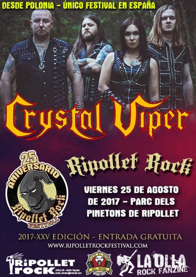 Per altra banda, Crystal Viper arriben de Polònia amb la seva proposta de heavy metal més clàssic, encapçalats per la seva guitarrista i cantant Marta Gabriel. Crystal Viper es va fundar l'any 2003 i fins al 2013 van editar cinc discos. Després d'una aturada de quatre anys, tornen amb el nou disc 'Queen of the witches'. Ross The Boss (ex Manowar) y Mantas (Venom) col·laboren en aquest treball.