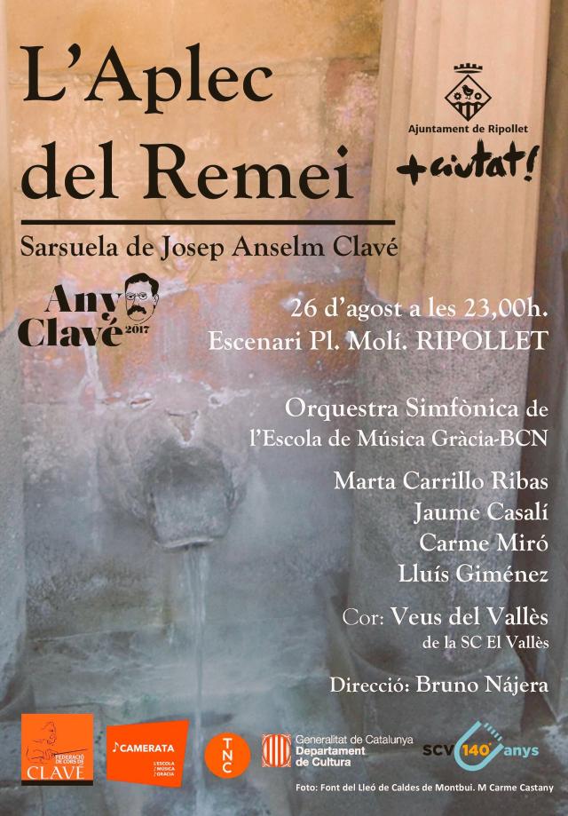 Fidelment adaptades les partitures del mestre Anselm Clavé, allò que va sonar el 30 de desembre de 1858 al Gran Teatre del Liceu ho podrem sentir i gaudir el dissabte, 26 d'agost, a la plaça del Molí. La Federació de Cors de Clavé ha cedit a Ripollet l'honor de l'estrena, prevista a Caldes, en el marc de l'Any Clavé 2017 i del 140è aniversari de la Societat Coral "El Vallès". La posada en escena anirà a càrrec de l'Orquestra Simfònica de l'Escola de Música de Gràcia-BCN, la soprano Marta Carrillo Ribas i el tenor Lluís Giménez, ambdós de Ripollet; protagonistes juntament amb la soprano Carme Miró i el baríton Jaume Casalí. El cor serà el de les Veus del Vallès, de la Societat Coral "El Vallès", i tot, sota la direcció de Bruno Nájera.