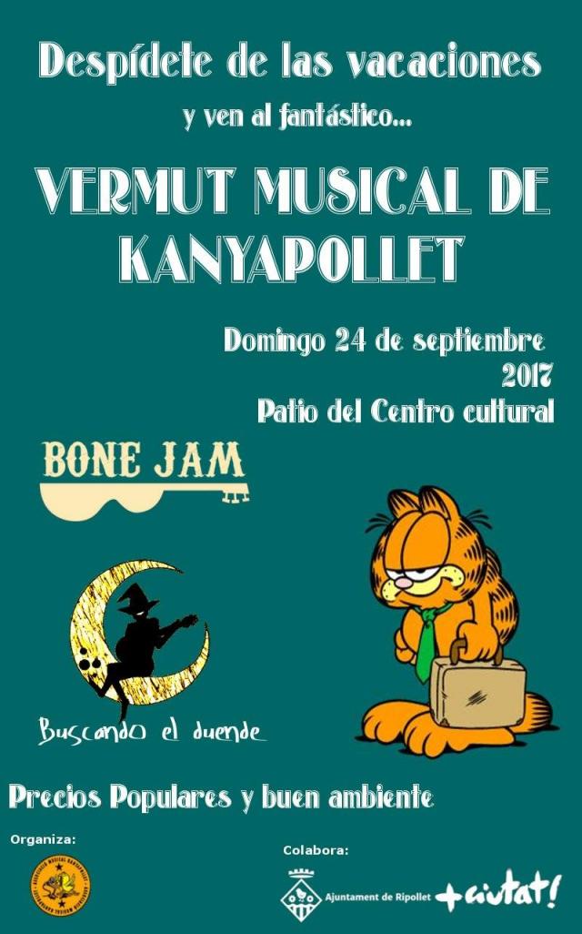 L'Associació Musical Kanyapollet celebrarà el 24 de setembre un vermut musical amb preus populars per acomiadar l'estiu. L'acte tindrà lloc al pati del Centre Cultural i comptarà amb les actuacions dels cerdanyolencs Bone Jam i dels ripolletencs Buscando el Duende.