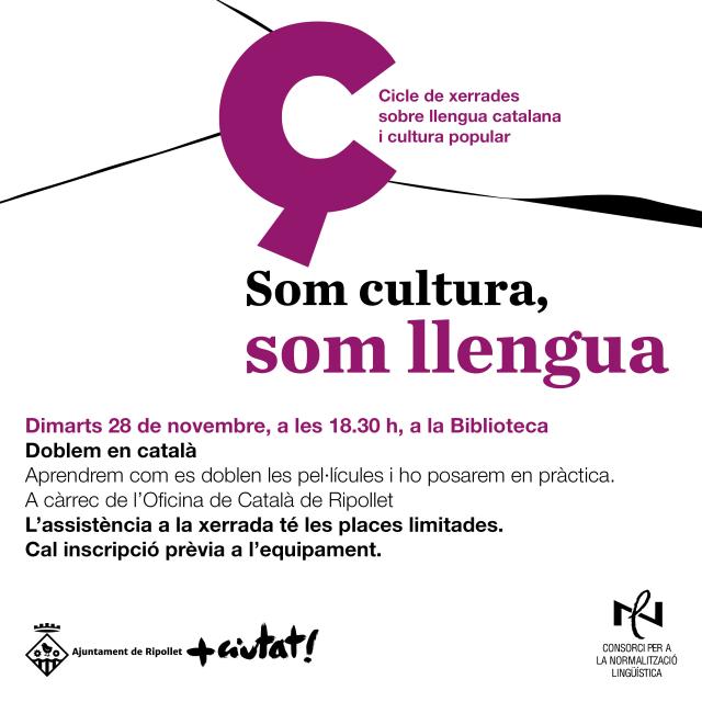 L'Oficina de Català de Ripollet i el Patronat Municipal de Cultura posaran en marxa aquest dimarts el projecte "Som cultura, som llengua", un cicle de xerrades sobre llengua catalana, cultura i festes populars. El seu objectiu és fomentar l'aprenentatge i l'ús de la llengua catalana i acostar la cultura popular a la ciutadania, especialment als nouvinguts, així com promocionar el teixit associatiu de Ripollet i el fons bibliogràfic de la biblioteca dedicat a l'aprenentatge de la llengua i cultura catalanes.