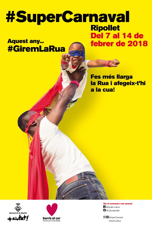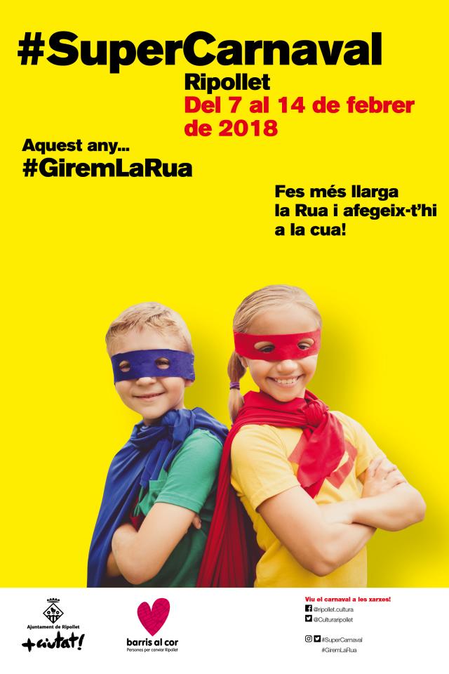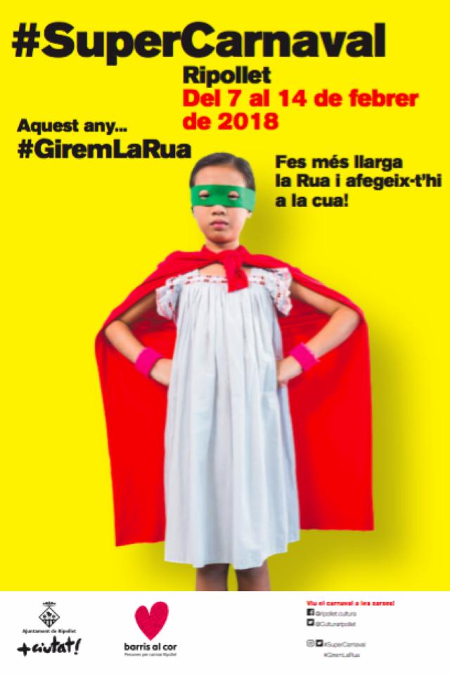La nova imatge de la festivitat, amb la figura del superheroi com a protagonista, pretén promoure "un Carnaval inclusiu, una festa per a tothom, sense la necessitat de grans disfresses o despeses. Amb una capa i un antifaç, tothom pot ser superheroi", comentava Mor durant la roda de premsa, que també ha fet una crida a la participació a través de les xarxes socials. La programació del Carnaval 2018 anirà acompanyada de dos hashtags: #SuperCarnaval, que mostra la voluntat de fer créixer el nombre de participants (l'any passat, en van ser uns 1.300), i #GiremLaRua, que fa referència al canvi de recorregut de la rua. El Centre Cultural se sumarà a la festa amb un innovador photocall.