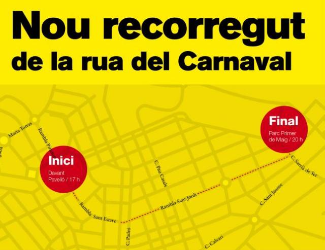 Tots els participants hauran de ser a les 17 h, al punt d'inici: a la rambla dels Pinetons, entre el Pavelló Municipal d'Esports Joan Creus i l'avinguda Maria Torras. A les 17.30 h, la Rua començarà a caminar per la rambla Sant Esteve i Sant Jordi i el carrer Sarrià de Ter, fins a arribar al Parc Primer de Maig on, a les 20&#8239;h aproximadament, tindrà lloc el Final de Festa.