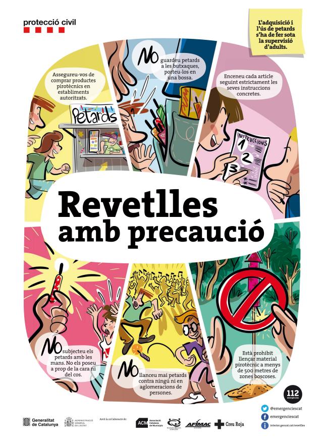 Per gaudir de les revetlles i tradicions catalanes cal tenir en compte els riscos que comporten el foc i els petards. Des del Departament d'Interior de la Generalitat de Catalunya, fan arribar una sèrie de consell per a la utilització dels petards: