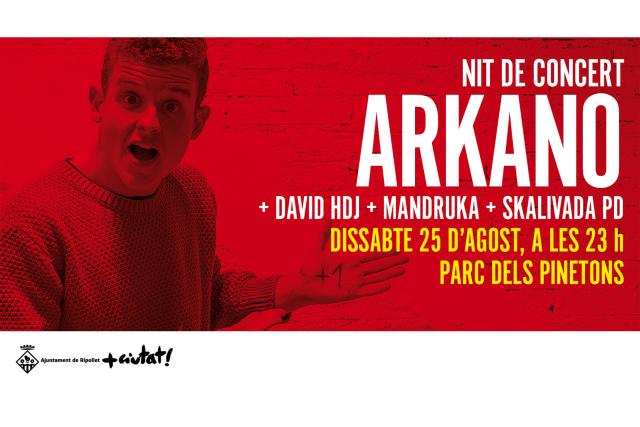 El cartell del concert del parc dels Pinetons comptarà amb el rap del músic alacantí Arkano, conegut per la seva gran capacitat d'improvisació i les seves rimes contra l'homofòbia i el masclisme. L'acompanya el DJ de música electrònica David Hidalgo, la banda d'electro funk Mandruka i l'Àlex i el Víctor, productors i dj d'Skalivada PD.