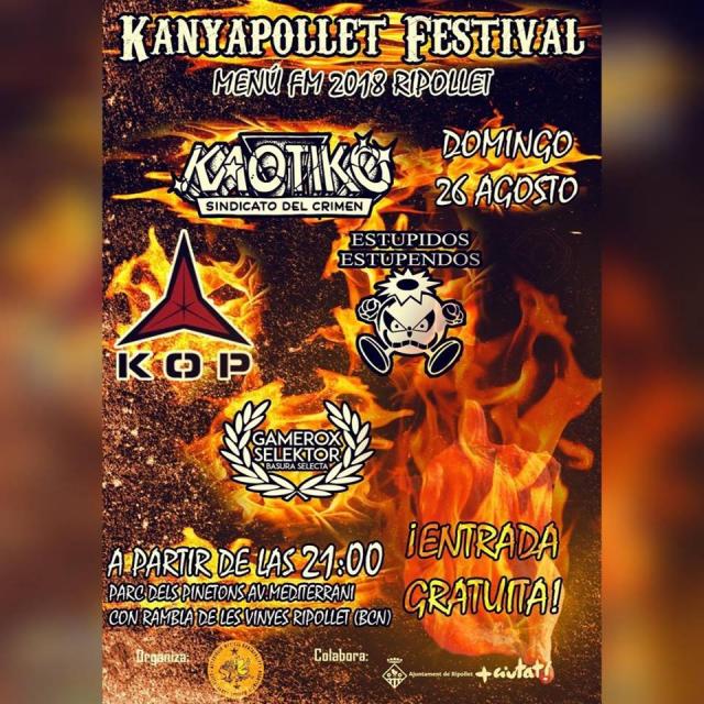 Per la seva banda, Kop e&#769;s un grup establert a Badia del Valle&#768;s de hardcore punk. Des de l'Associacio&#769; musical Kanyapollet, expliquen que, si el cartell de l'any passat era me&#769;s de rap, enguany e&#769;s de punk-rock. "Kaotiko e&#769;s un grup que no actua gaire a Catalunya, nome&#769;s en festivals, i creiem que pot portar gent jove de fora de Ripollet que els vinguin a escoltar", comenten des de l'organitzacio&#769;.