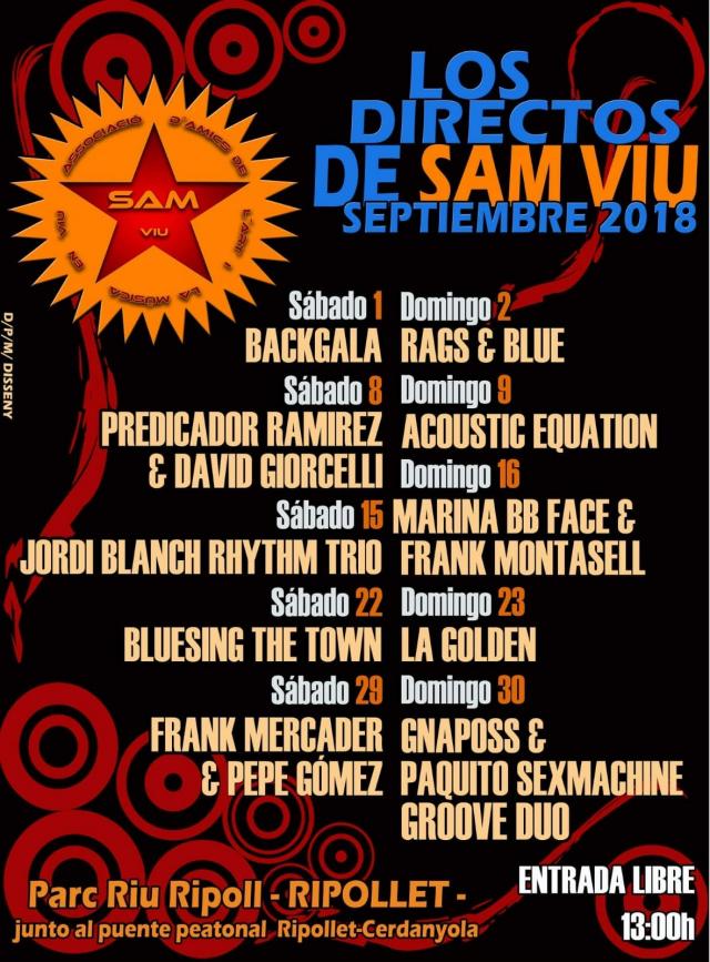 El Sam Viu arriba aquest setembre a Ripollet amb una sèrie de concerts setmanals i un cartell molt variat, amb un repertori de blues, folk, country, rock i versions, entre altres. Els artistes convidats vénen de Catalunya i de la resta de l'estat, i s'hi poden trobar noms coneguts com Predicador Ramirez, Marina BBface o Gnaposs.