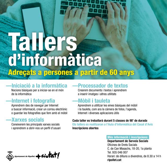 Als tallers d'informàtica, a banda d'aprendre les nocions bàsiques per a iniciar-se en el món de la informàtica, també es treballen temes com internet i fotografia, xarxes socials, processador de textos i mòbil i tauleta. Es tracta d'afavorir l'accés de les persones grans a les noves tecnologies. El taller de memòria, per la seva banda, és fonamentalment preventiu, amb exercicis on es treballen l'atenció, la concentració i la lògica.