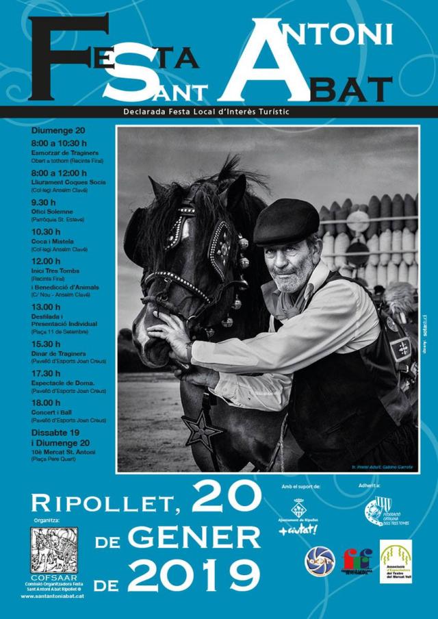 Aquest cap de setmana, torna la festa de Sant Antoni Abat a Ripollet, en la seva 126a edició. Els actes començaran el dissabte amb la presentació del programa de la festa i actuacions, i continuaran durant tot el matí del diumenge, fins ben entrada la tarda. A més, es compleixen 10 anys del mercat d'artesania de Sant Antoni, que es trobarà a la plaça de Pere Quart durant tot el cap de setmana, i on s'hi podran tastar tota mena de productes artesanals i tradicionals.