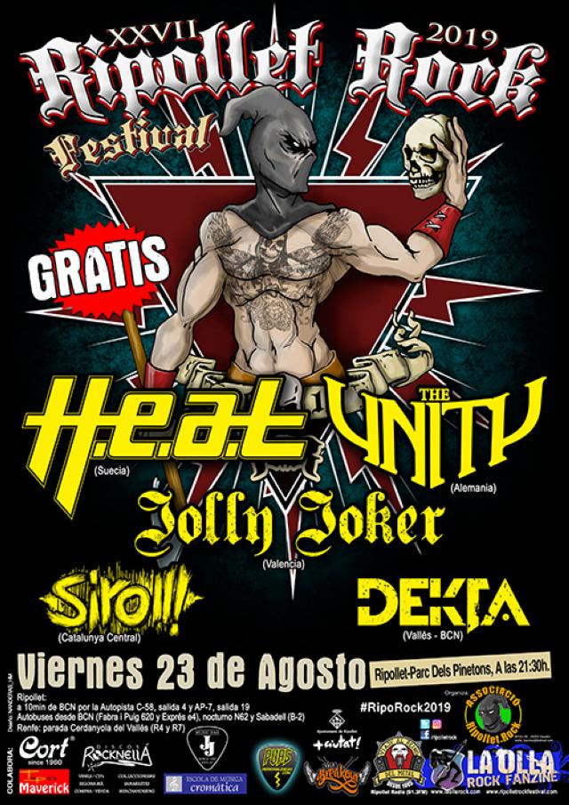 Un any més el Ripollet Rock Festival marcarà un dels punts àlgids de la Festa Major de Ripollet. El festival, que celebra 27a edició el divendres, 23 d'agost, al parc dels Pinetons, comptarà amb un cartell espectacular, encapçalat pels suecs H.E.A.T., una de les bandes del moment que arriba amb tota la força del seu darrer treball, Into The Great Unknown. Un altre dels plats forts serà la banda alemanya The Unity, grup fundat per membres dels clàssics Gamma Ray, que portaran el seu metall melòdic al parc dels Pinetons. Pel que fa a les bandes nacionals, actuaran els valencians Jolly Joker amb el seu glam rock. Els grups catalans presents al festival seran Siroll, una de les bandes més potents del metall extrem del país, amb les seves lletres reivindicatives en català, i Dekta, que ens duran el seu àlbum homònim.