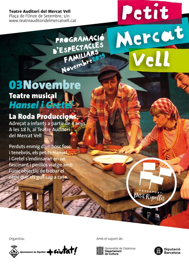 El 3 de novembre, la Roda Produccions presentarà el clàssic de 'Hansel i Gretel', sempre des de la seva particular versió. Perduts enmig d'un bosc fosc, Hansel i Gretel s'endinsen en un camí que els condueix a la casa de llaminadures, però a dins trobaran a una bruixa dolenta que els farà la vida impossible.
