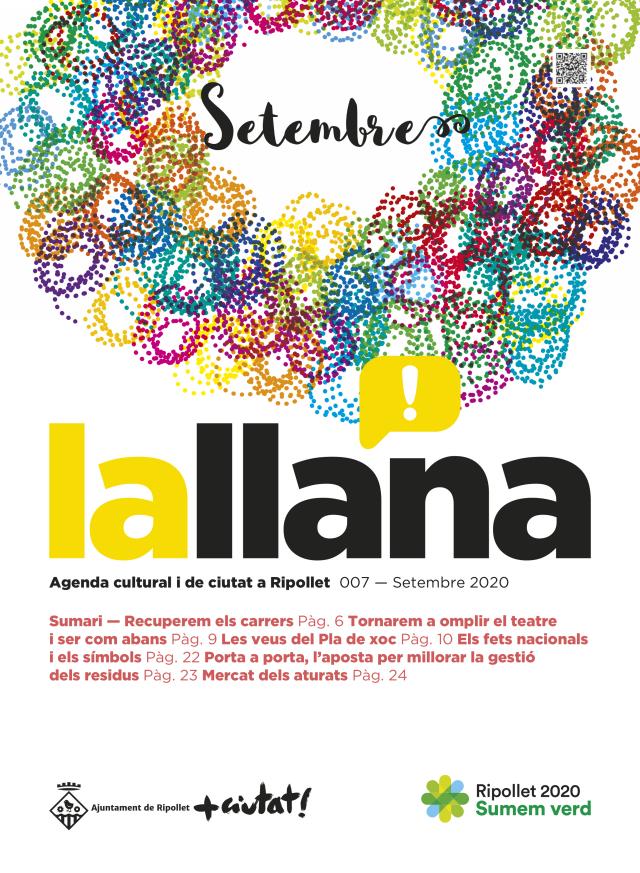 Aquest divendres torna la revista municipal "lallana" a les bústies de Ripollet. A més de l'agenda mensual, amb més de 30 activitats de l'Obrim l'estiu, l'edició 007, corresponent a setembre de 2020, també porta reportatges sobre la pacificació de carrers i places que s'està duent a terme i dels protagonistes del Pla de xoc; entrevistes a la presidenta de l'Associació d'espectadors, Laura Dulcet i al Mercat dels aturats, així com interessants articles d'anàlisi. També la podeu descarregar en versió digital ampliada amb continguts interactius