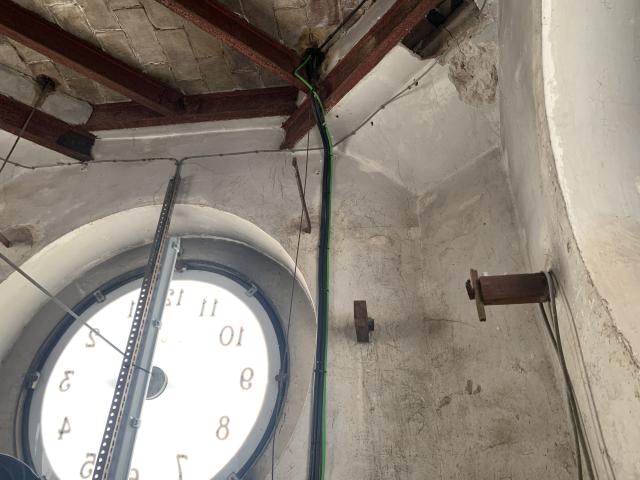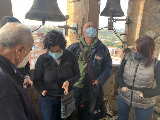 Els tècnics, acompanyats del rector Josep Gassó i de la cap d'unitat de Patrimoni de l'Ajuntament, Elena Vilalta, van analitzar algunes cates realitzades per la Brigada municipal, així com l'accés a la part superior del campanar, on es troben les campanes del rellotge i que presenta, d'entrada, els majors problemes estructurals.
