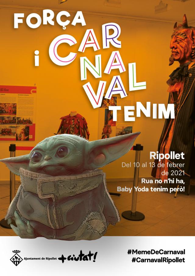 Aquest any la pandèmia impossibiita la celebració de les activitats habituals del Carnaval. No obstant això, des dels departaments de Cultura i de Joventut s'ha preparat un programa que convida a la gent a participar virtualment i a divertir-se. Segons els regidor de Cultura, Oriol Mor: "ens hauria agradat viure'l de manera diferent, però no ha pogut ser. Però volem que la gent participi i que faci que el Carnaval de Ripollet sigui viral a les xarxes". En aquest sentit, s'ha apostat per l'humor dels "memes", com ara el de la figura de Baby Yoda, que protagonitza el cartell. "Volem reivindicar l'humor com a eina important per adaptar-nos i seguir endavant. Volem que el sentit de l'humor ens impregni aquests dies", va declarar Mor en la roda de premsa de presentació del Carnaval 2021. Amb, l'objectiu de seguir tenint present la cultura popular, amb la figura del Cabraboc i La llegenda del Vell i la Vella, s'ha enregistrat enguany expressament un espectacle al Teatre Auditori, amb Diables i Gitanes de Ripollet, que ja es pot veure a YouTube.