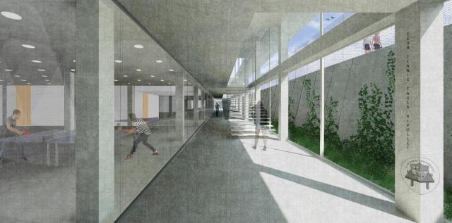 Arquitectònicament, destaca, entre d'altres, la construcció d'un pati anglès, que permetrà l'entrada de llum natural a la planta soterrani. Aquesta preveu comptar amb un espai central, amb més alçada, adequat per a competicions de tennis taula i complint el reglament com a centre de tecnificació. També hi haurà zona de grades, vestidors i nous espais per a oficines i magatzems. A la planta baixa, a més de la consergeria, s'ubicaran tots els vestidors, que seran modulables, per fer-los servir segons les necessitats. La primera planta comptarà amb 5 mòduls de la mateixa mida, 2 per al gimnàs, amb sala de càrdio i de musculació; un central per administració i entitats; una sala de ciclo indoor i una altra d'activitats dirigides, la qual cosa permetrà ampliar l'oferta actual i donar dues classes simultànies. Per últim, a la segona planta, hi haurà un mòdul central amb oficines del personal d'esports. L'edifici, que es farà amb materials que requereixin poc manteniment, com ara vidre i formigó vist, està pensat per rebre molta llum natural i afavorir l'aïllament i la climatització en termes de sostenibilitat.