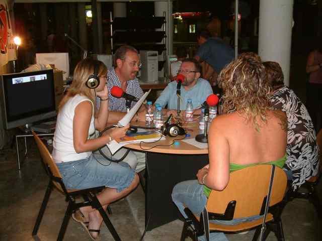 Foto: el regidor de Cultura (centre), juntament amb l'alcalde de Ripollet i membres de la Comissió de festes, durant una entrevista a l'estand de Ripollet Ràdio.