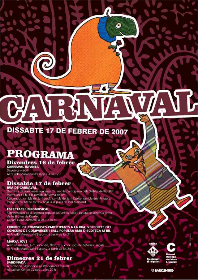 Tot està a punt per l'inici, aquest divendres, 16 de febrer, dels actes de Celebració del Carnaval 2007 a Ripollet. Els més petits seran els protagonistes, amb el carnaval infantil amb discoteca mòbil que el Patronat Municipal de Cultura i Joventut ha organitzat al Pavelló d'Esports a partir de les 17 hores. L'acte principal tindrà lloc dissabte, amb la Rua de carnaval i el tradicional concurs de comparses que desfilaran pels carrers de Ripollet a partir de les 17 h.