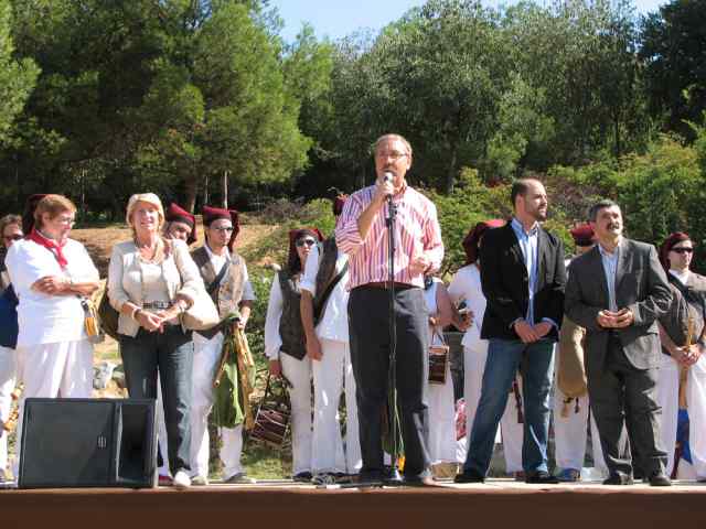 - L'alcalde Juan Parralejo, el Regidor de Cultura, Ferran Tornel, Nuria Brull, filla de Josep M. Brull i Rosa Maria Dumenjó, membre de la CRAC, a l'escenari central.