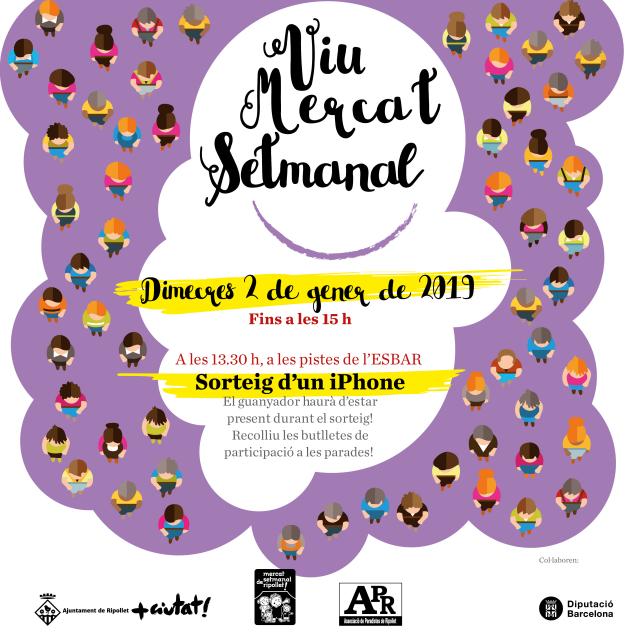 Sorteig d'un iPhone, a les 13.30 h, a les pistes de l'ESBAR. Butlletes, a les parades del Mercat Setmanal.