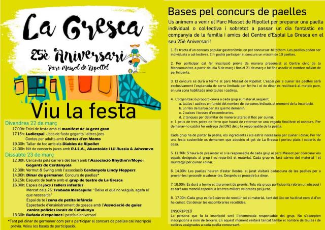 Activitats de celebració del 25è aniversari de La Gresca.