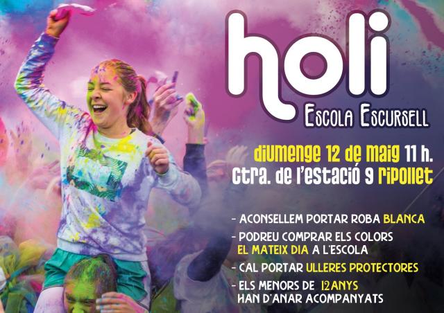 Festa hindú dels colors. Entrada lliure, es poden comprar els colors a l'escola el mateix dia. Els menors de 12 anys han d'anar acompanyats.