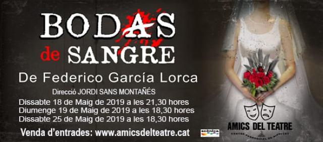 Representació de Bodas de sangre, de Federico García Lorca, a càrrec d'Amics del Teatre. Dirigida per Jordi Sans Montañés. Dissabte 18 a les 21.30 h i diumenge 19 a les 18.30 h. Entrades a amicsdelteatre.cat
