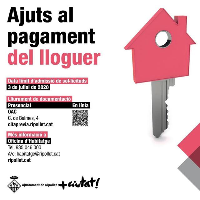 - Per a lloguers de fins a 750 € a la demarcació de Barcelona. Sol·licituds fins al 3 de juliol.
