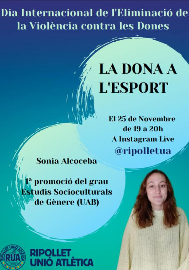 Xerrada a càrrec de l'entrenadora del RUA Sonia Alcoceba sobre la presència de les dones a l'esport, a través d'instagram @ripolletua.