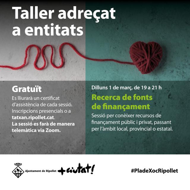 Taller adreçat a entitats: Recerca de fonts de finançament