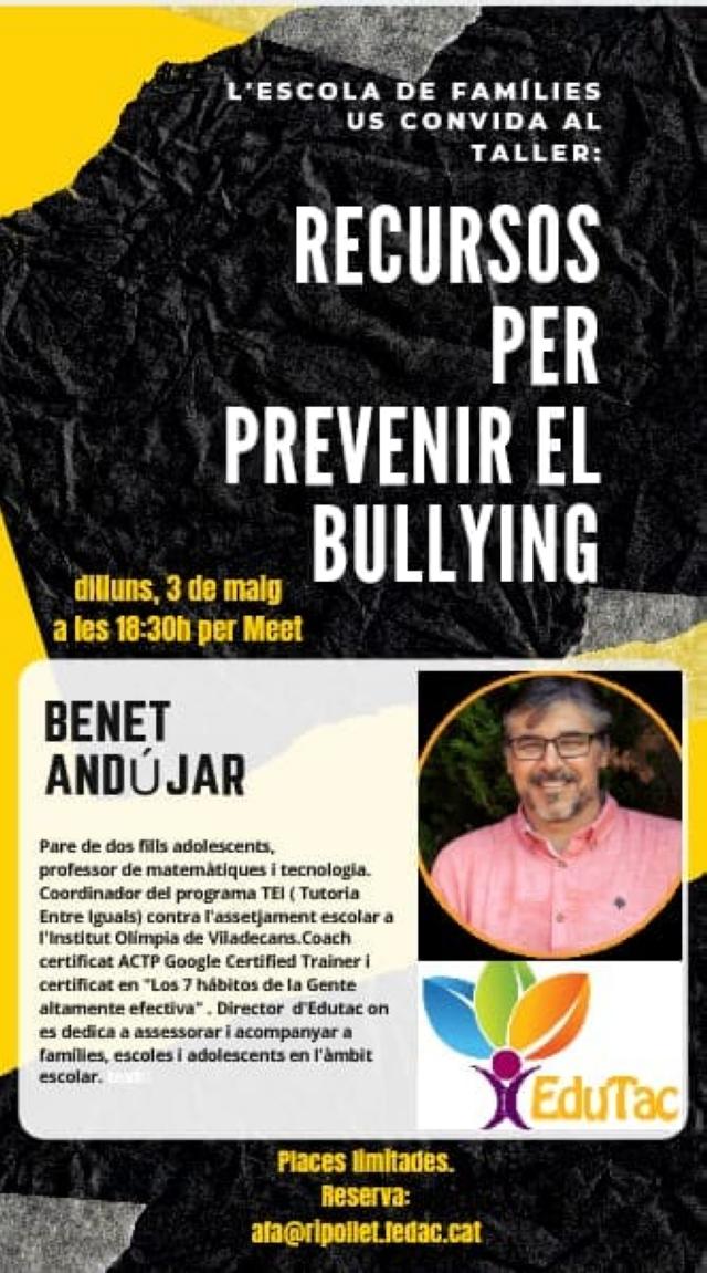 Xerrada: "Recursos per a prevenir l'assetjament escolar. L'empoderament familiar i grupal"