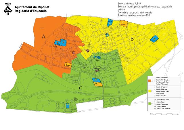 Podeu ampliar la imatge clicant sobre ella o descarregant el pdf amb el Plànol escolar (zonificació escolar) del nou curs.